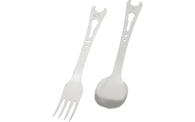 Ein Löffel auf der einen Seite und auf der anderen ein Düsen- und Kabelwerkzeug zur Wartung des MSR Flüssigbrennstoffkochers. Aus robustem, extrem strapazierfähigem Edelstahl.