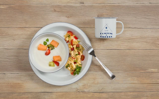 3-tlg. Trekking-Geschirrset mit Emaille-Beschichtung für eine Person im angesagten Camping Design. Es ist pflegeleicht, bruchunempfindlich und geräuscharm. Nicht geeignet für die Mikrowelle. Temperaturbeständig von – 20° C bis + 70° C.