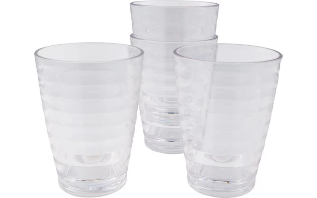 Ein extra festes und luxuriöses Limonadenglas. Hergestellt aus Polycarbonat. Dies macht das Glas praktisch unzerbrechlich, leicht und kratzfest. Dieses Glas ist außerdem spülmaschinenfest. Ein Set enthält 4 Gläser.