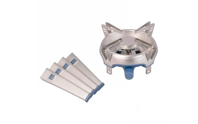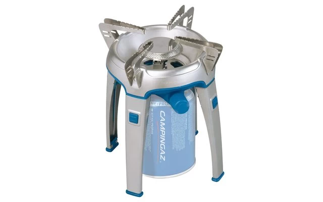 der robuste Kocher Bivouac™ hat ein futuristisches Design und weist ein hohes Maß an Stabilität auf. Er eignet sich daher und aufgrund des hohen Bedienungskomforts besonders gut für Einsteiger im Umgang mit Gaskochern. Der Kocher ist groß genug, um auch größeren Pfannen und Töpfen sicheren, stabilen Halt zu geben. Trotzdem hat er ein kompaktes Maß, da die Beine für den Transport einfach abgenommen werden können.