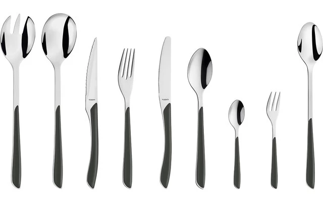 Das 44-teilige AllYouNeed Besteckset von Amefa beinhaltet alles was Du brauchst! Modernes Bestseckset in matter Optik für 6 Personen aus hochwertigem Edelstahl. Das umfangreiche Set mit 44 Teilen beinhaltet alles, was man für eine gemeinsame Mahlzeit benötigt! Die Kunststoff-Griffe sind ergonomisch geformt und bestechen durch eine leicht geschwungene Form, dadurch liegt das Besteck besonders gut in der Hand und das Schneiden ist kinderleicht. Alle Besteckteile sind zudem spülmaschinengeeignet.