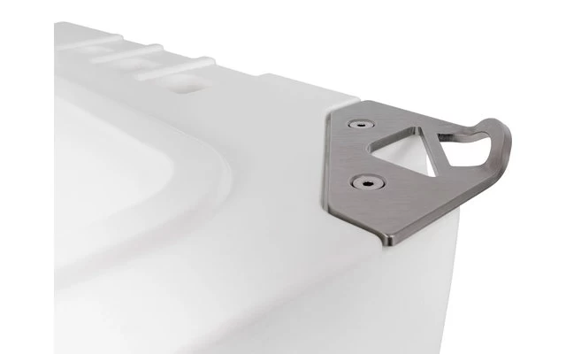 Die Petromax Kühlbox sicher verschließen und Getränkeflaschen bequem öffnen: Die Schlossplatte mit integriertem Flaschenöffner bietet dir bei deinen Draußen-Abenteuern eine praktische Doppelfunktion. Das Zubehörteil aus Edelstahl passt genau an die Position der unteren Verschlussplatte deiner Petromax Kühlbox und wird einfach gegen diese ausgetauscht. So verschließt du weiterhin deinen Proviant sicher vor fremdem Zugriff und kannst gleichzeitig Getränkeflaschen mit handelsüblichem Kronkorkenverschluss öffnen. Die Schlossplatte mit Flaschenöffner ist universell und daher für alle Petromax Kühlboxen geeignet.