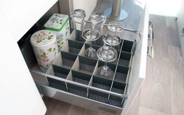 Extra hoch! Besonderheit ist die Höhe von 100mm. Bruchsicherer Transport von hohen Gläsern, hohe Flaschen, Dosen, hohe Haushaltsutensilien, etc.