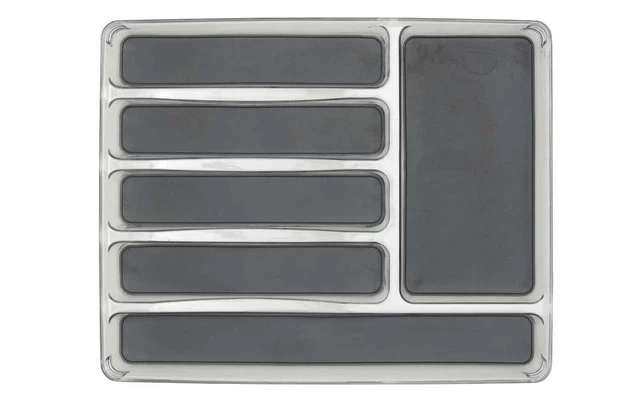 - Fünf Besteckfächer für getrennte Aufbewahrung von Messern, Gabeln, Löffeln, Teelöffeln oder Küchenmessern