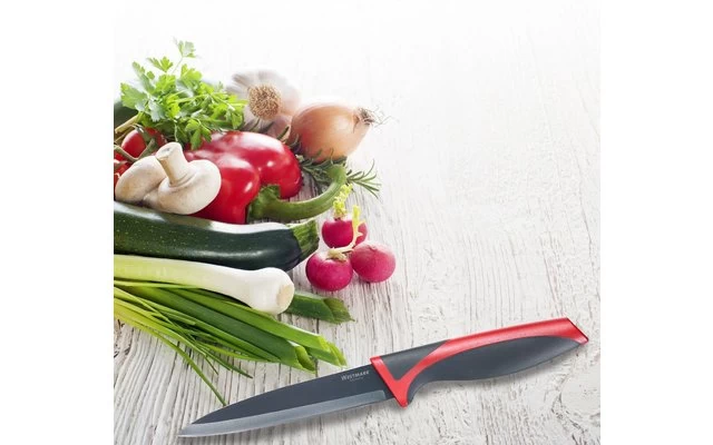 Mittelgroßes, funktionales Universal-/Küchenmesser mit scharfer, schmaler Klinge zum Schneiden, Hacken, Zerteilen und Schälen von Obst, Gemüse und Co.